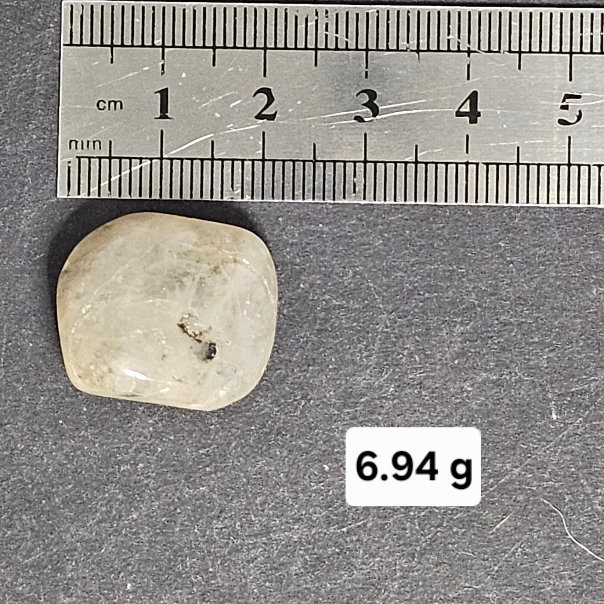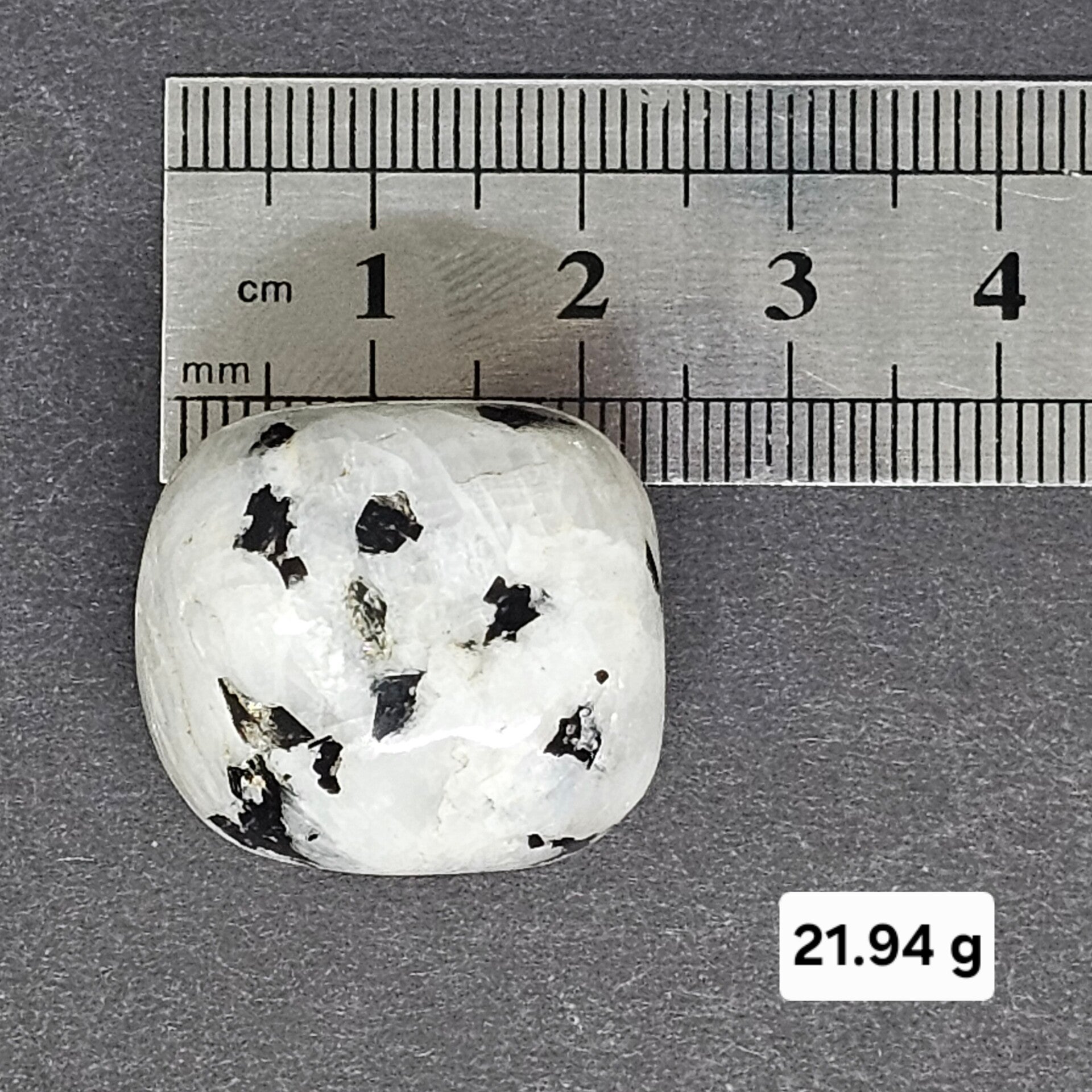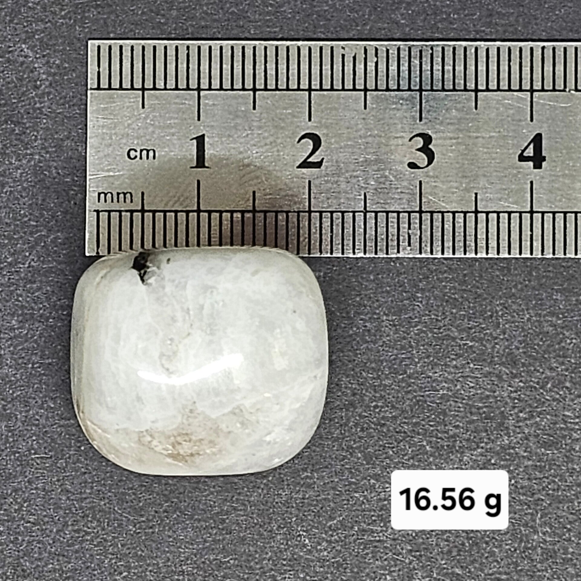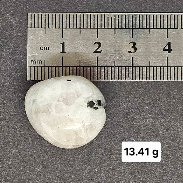 La Pierre de Lune tient son nom de sa ressemblance avec la lune mais son nom scientifique est Hécatolite ou Adulaire. En effet, la pierre de lune a la particularité de produire un phénomène d’adularescence, c’est-à-dire qu’elle présente en surface un reflet gris bleuté, qui glisse sur la gemme en suivant la lumière. C'est une pierre spirituelle dont les énergies Yin sont prédominantes. Elle est donc liée à la féminité et à l’intuition.
