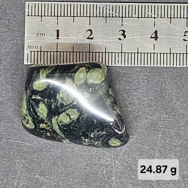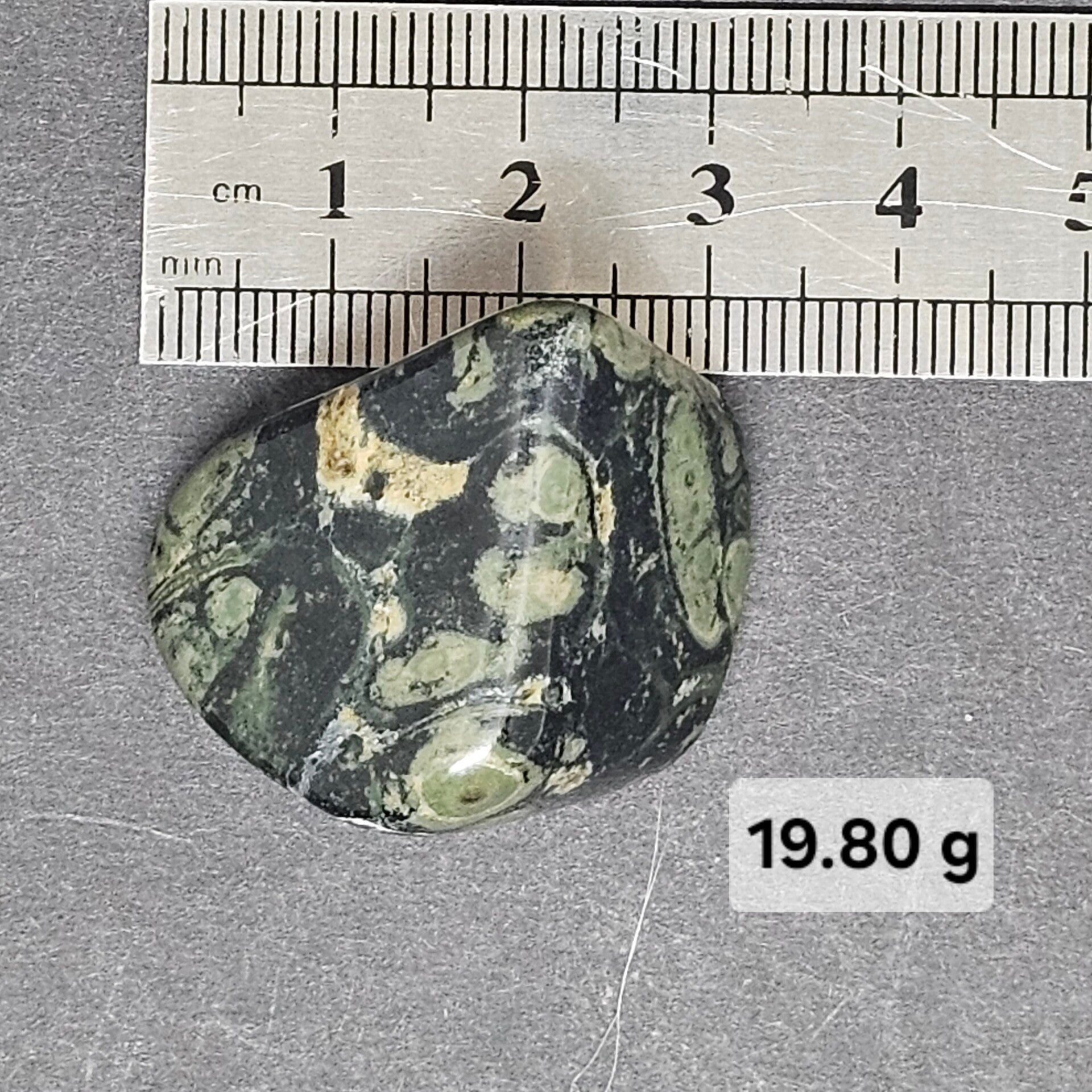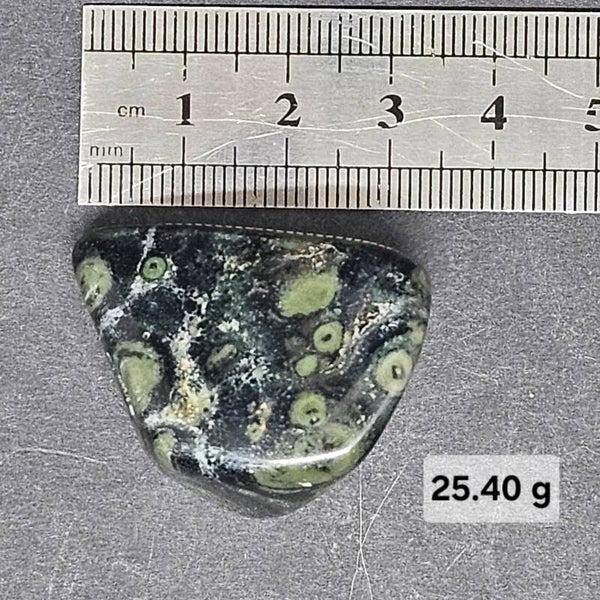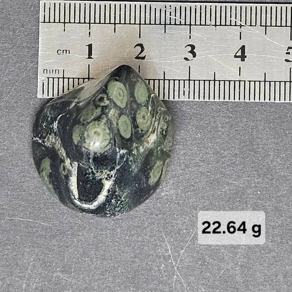 Le Jaspe Kambaba est une pierre rare et ancienne (souvent considérée comme un fossile stromatolite, vieux de plus de 3 milliards d'années) qui symbolise la connexion aux forces primordiales de la Terre et l'énergie du vivant.