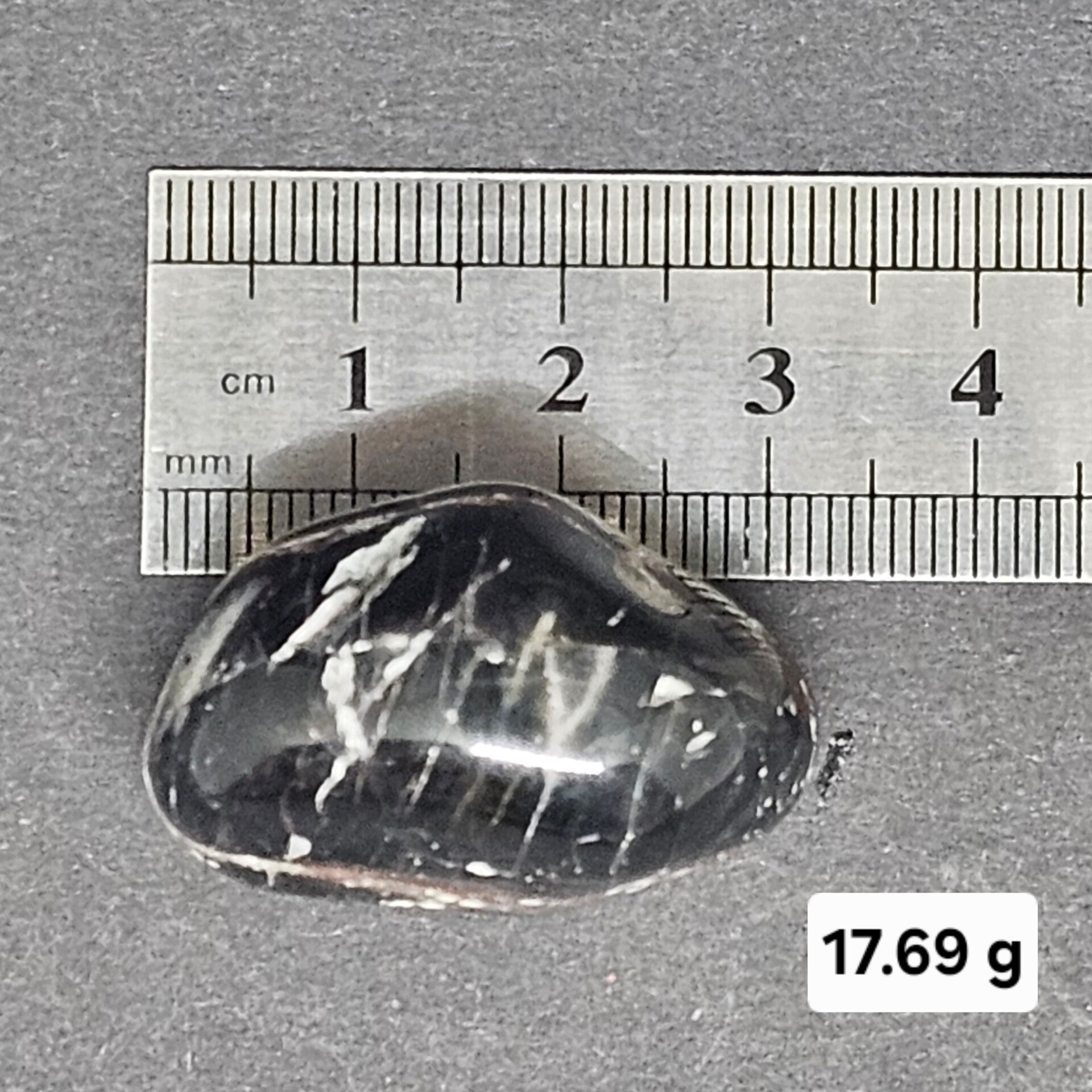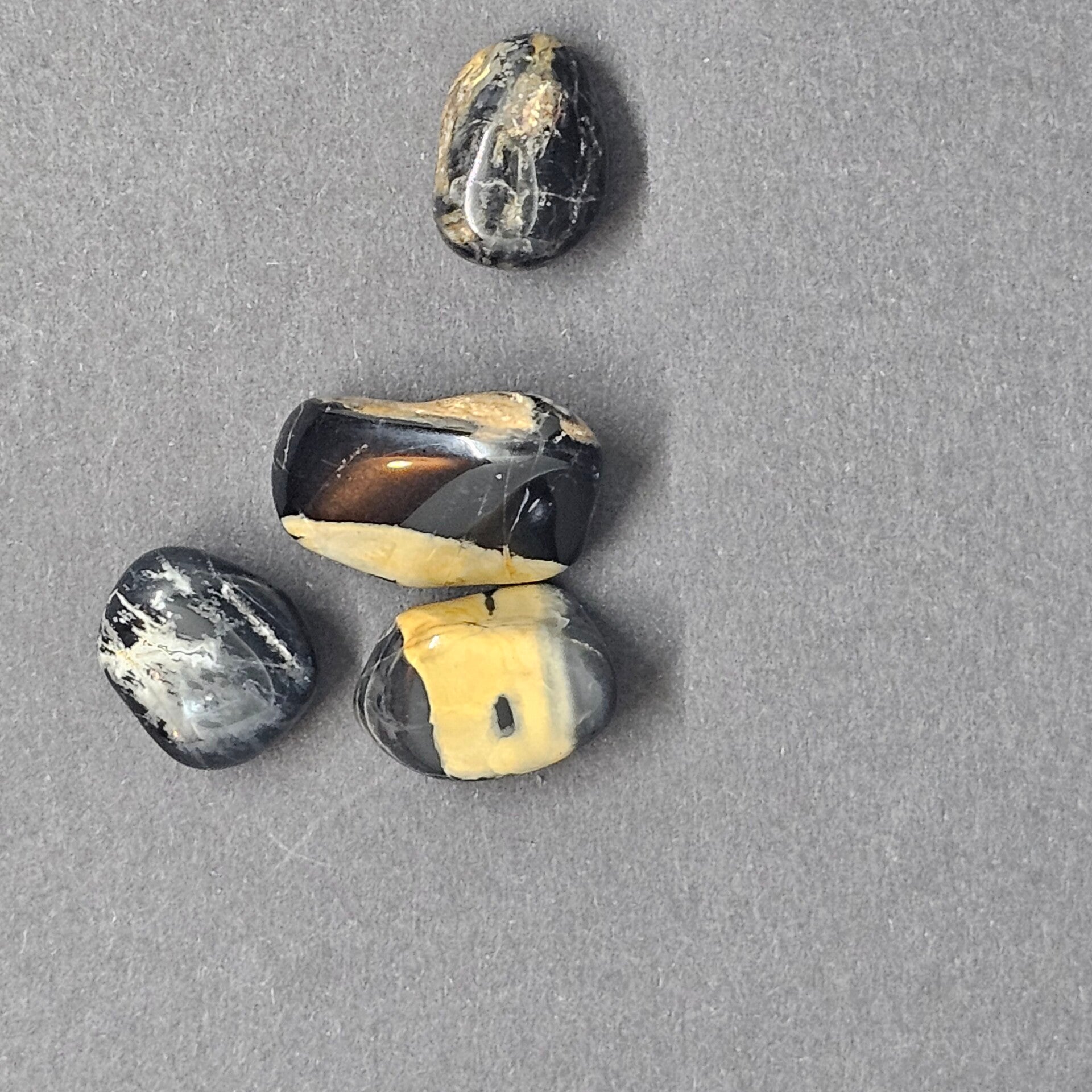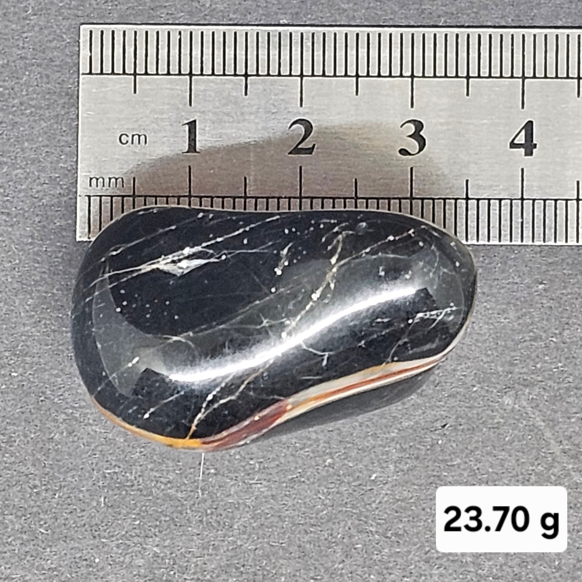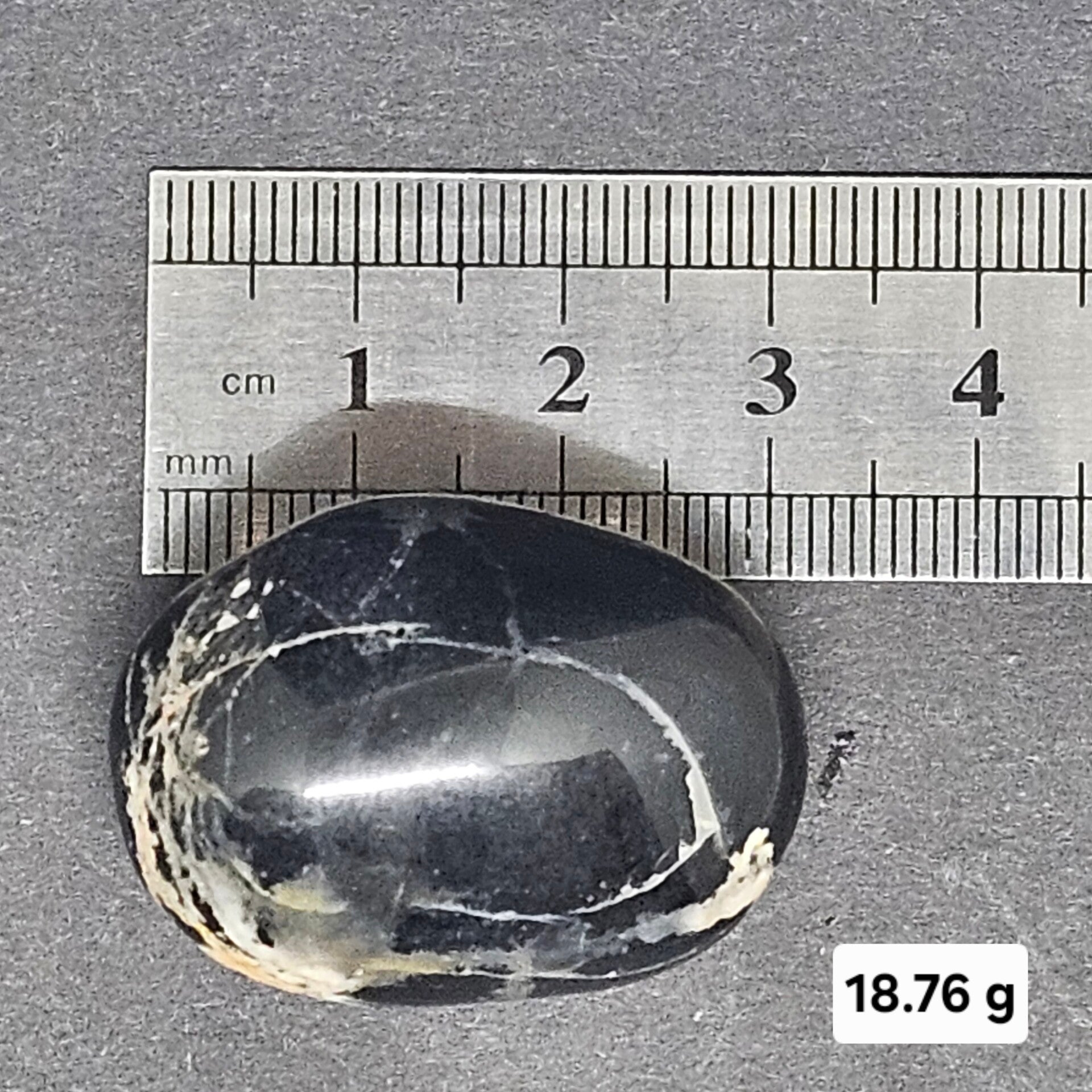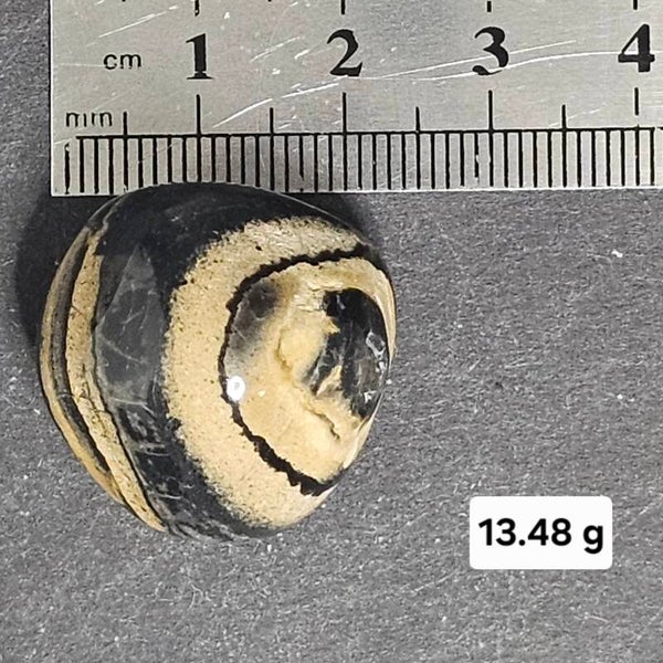 Couleur : Noire et composée de strates noires et blanches (variété d'Agate)