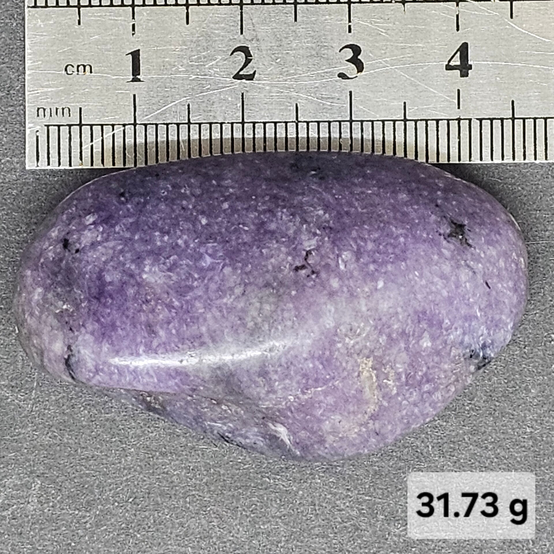 Couleur : Violet, Pourpre, souvent avec des veines blanches et noires (aspect fibreux et soyeux)