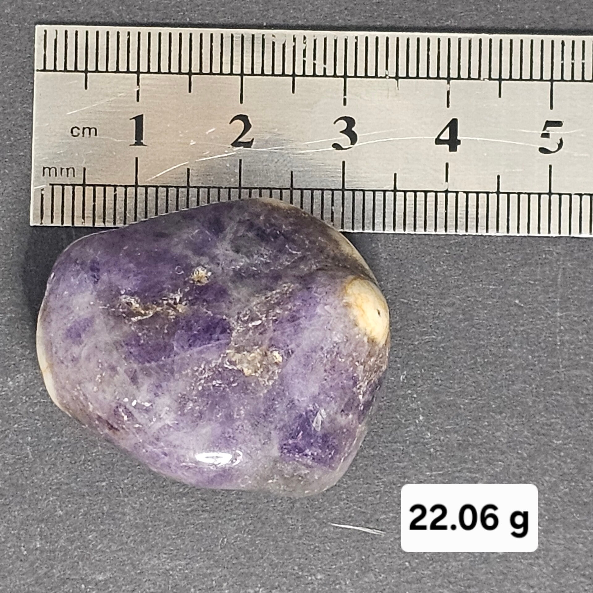 Couleur : Bandes (chevrons) violettes (améthyste) et blanches/laiteuses (quartz)