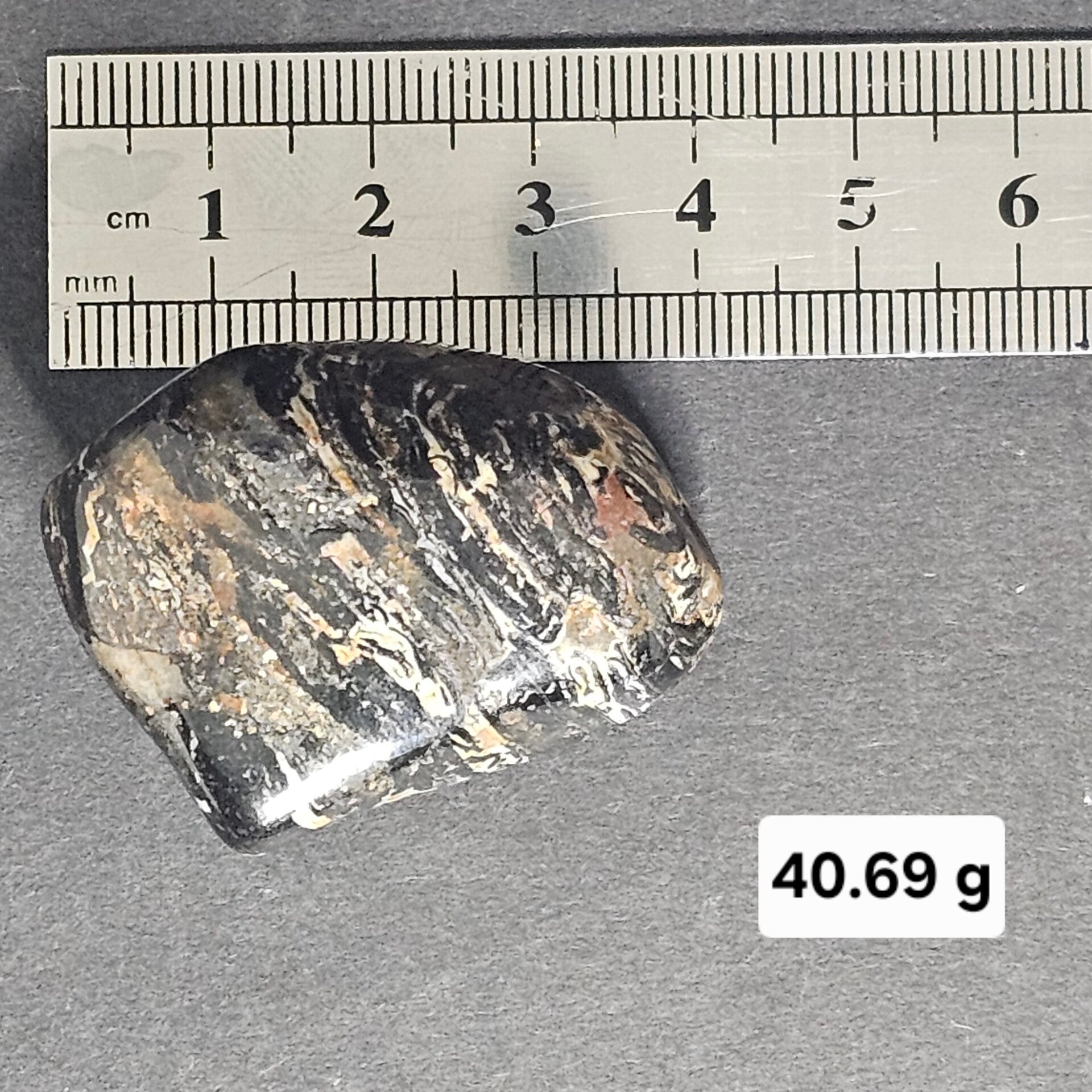 Le Jaspe Feuille d’Argent (ou Silver Leaf Jasper) est une variété de Jaspe reconnaissable à ses teintes de gris, de noir et parfois de brun, parcourues de motifs lumineux et argentés qui rappellent le feuillage ou les veines. En tant que Jaspe, il est profondément lié aux énergies de la Terre-Mère. Surnommé le "Protecteur Suprême", il agit comme un puissant bouclier contre les agressions psychiques et la négativité, tout en instaurant une paix intérieure durable. C'est une pierre de modération qui favorise l'équilibre du Yin et du Yang.