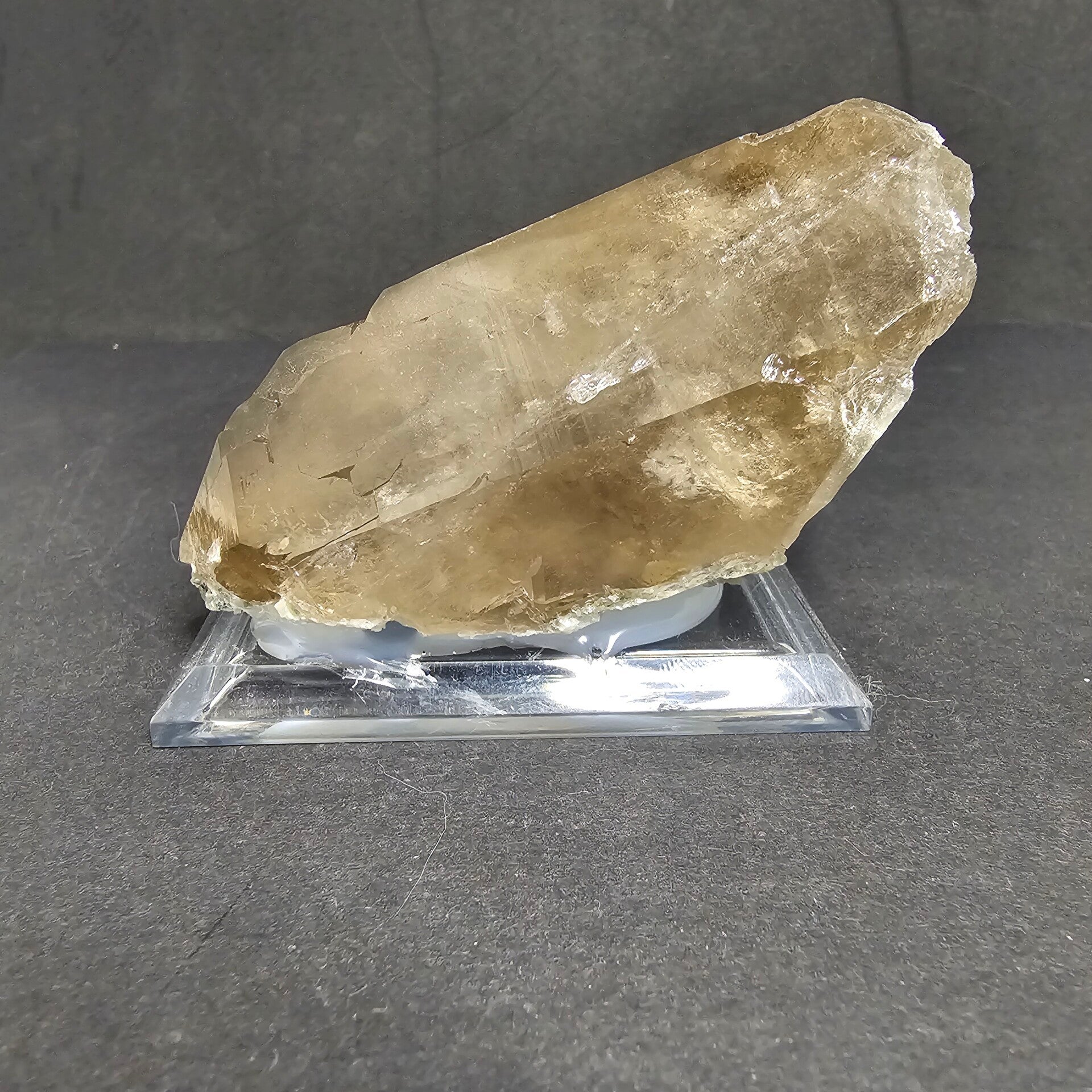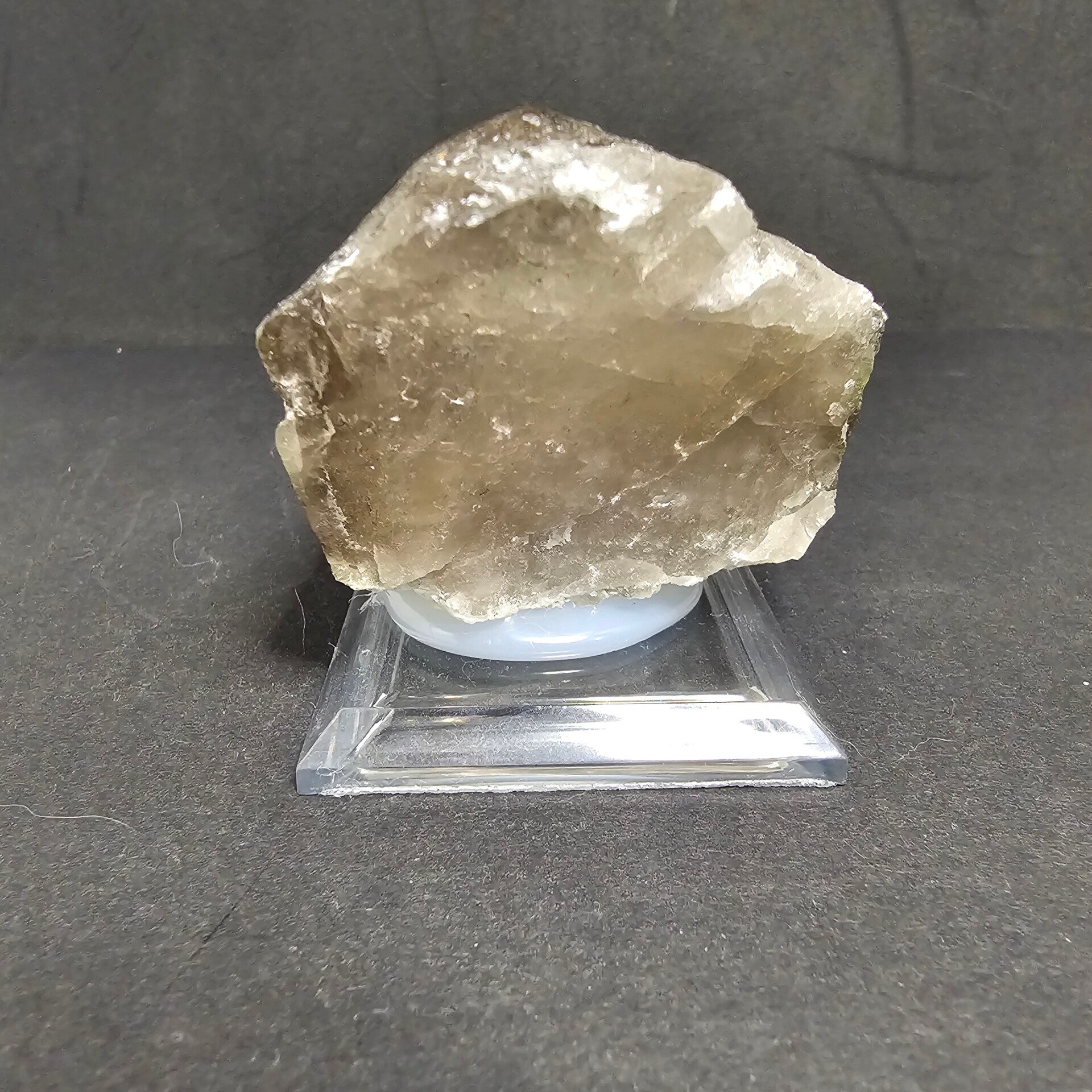 Couleur: Brun translucide à fumé, légèrement irisé par endroits.