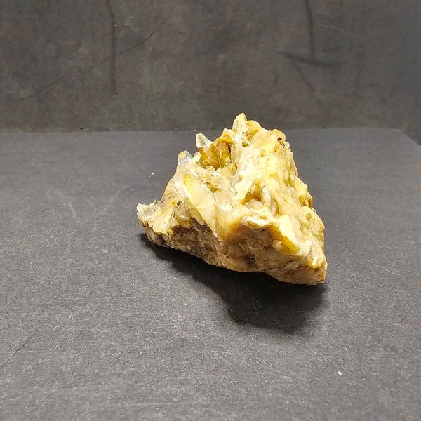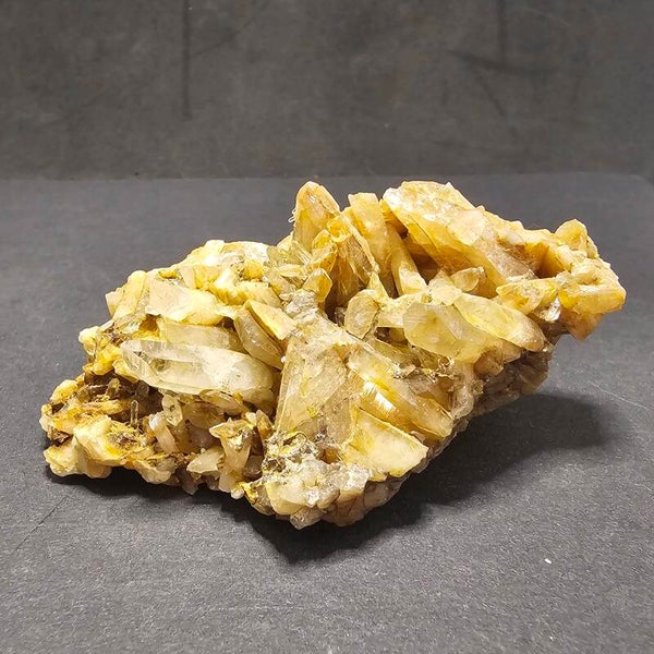 Découvrez ce spectaculaire spécimen de Quartz Alpin provenant de la célèbre région de Bovernier, en Valais. Cette pièce est un agrégat de cristaux bien formés, présentant une couleur captivante qui varie entre un jaune d'or chaud (citrin) et des nuances plus fumé-brunes. Cette coloration est typique des gisements alpins et résulte souvent d'une irradiation naturelle.