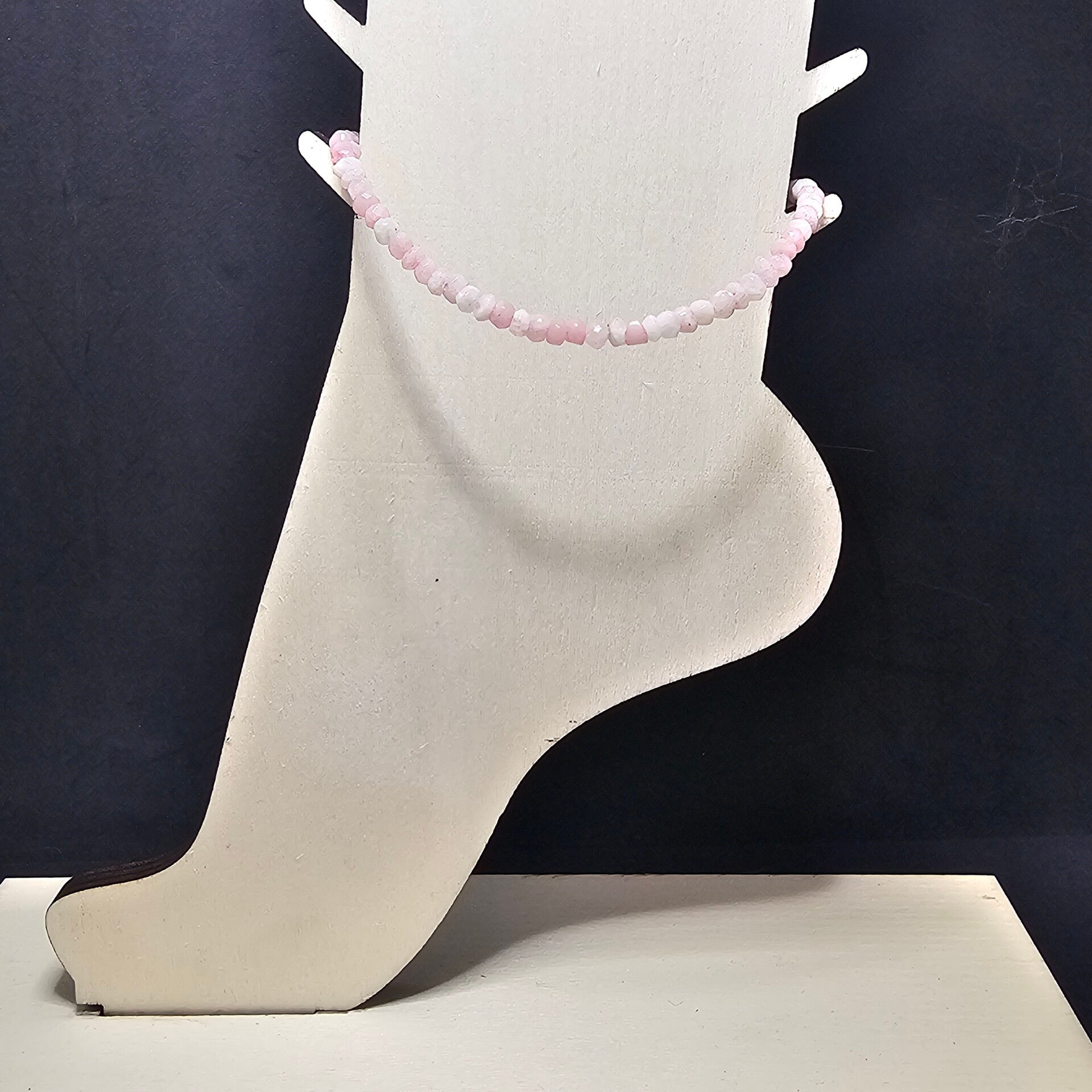 Adoptez l'élégance délicate et l'énergie apaisante du Quartz Rose avec ce charmant bracelet de cheville. Composé de petites perles naturelles, taillées en facettes et polies, ce bijou capte la lumière et scintille doucement à chaque mouvement. Les nuances douces de rose et de blanc créent un look féminin et raffiné.