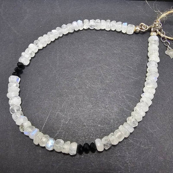 🖤🌙 Bracelet de Cheville en Pierre de Lune & Spinelle Noir (Argent 925) 🌙🖤