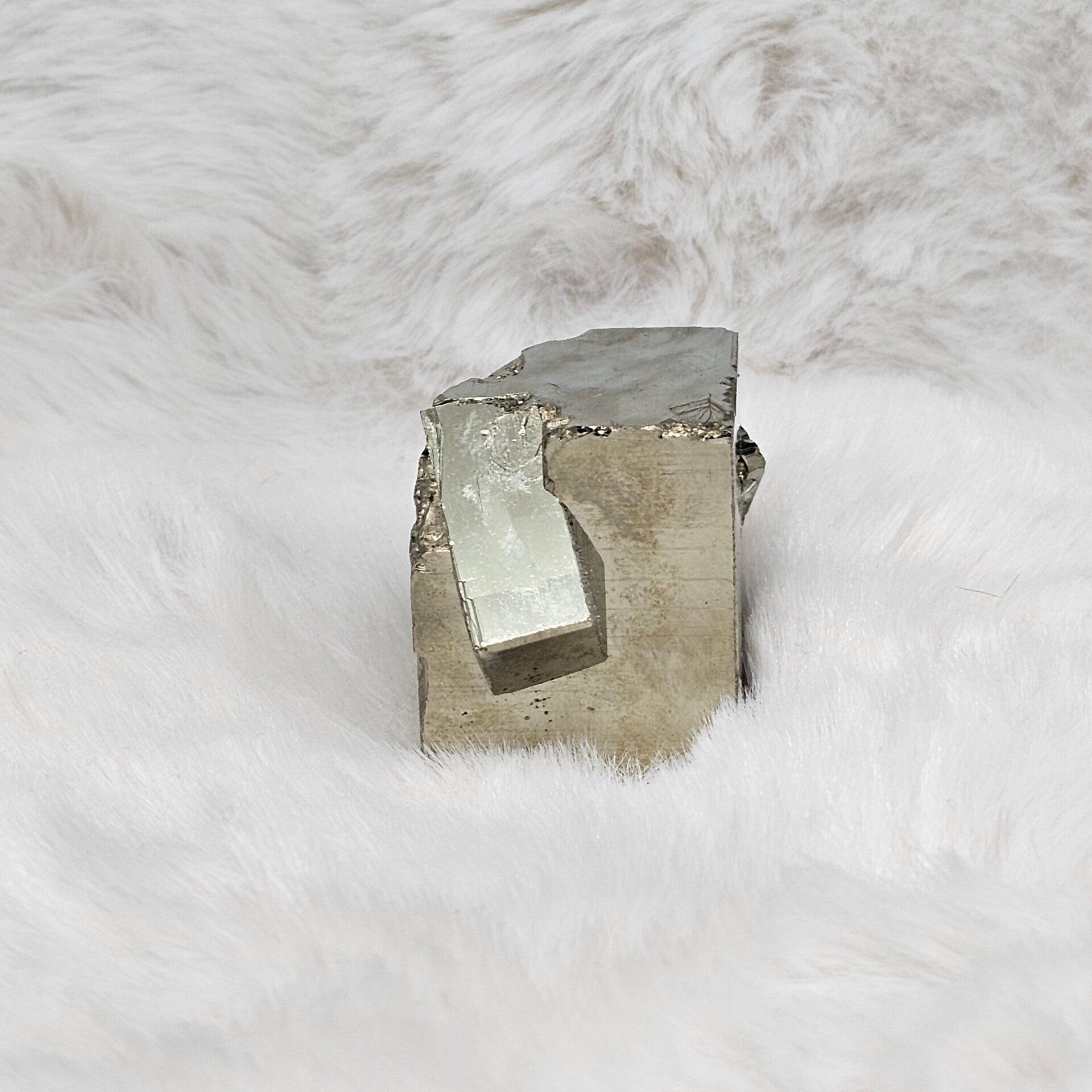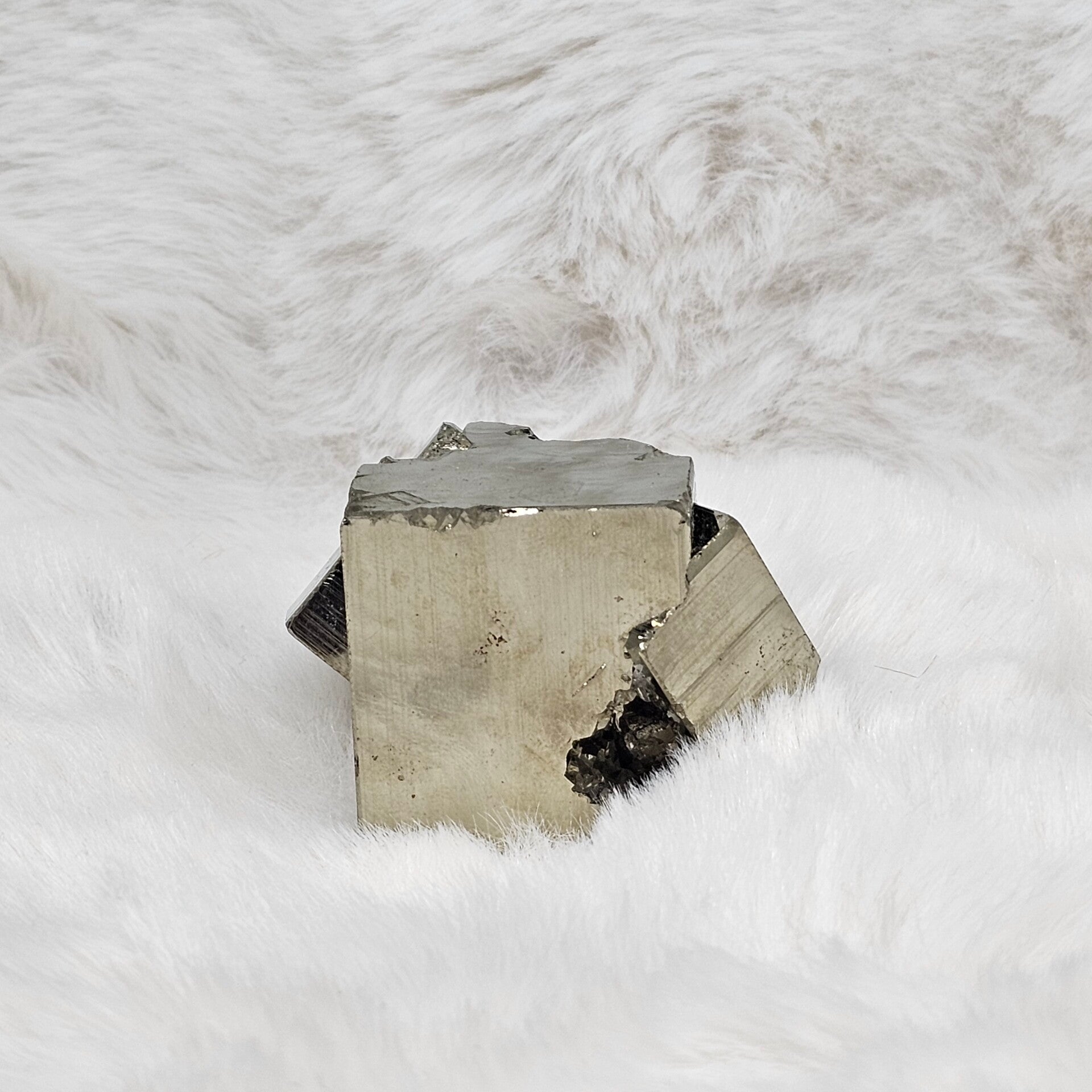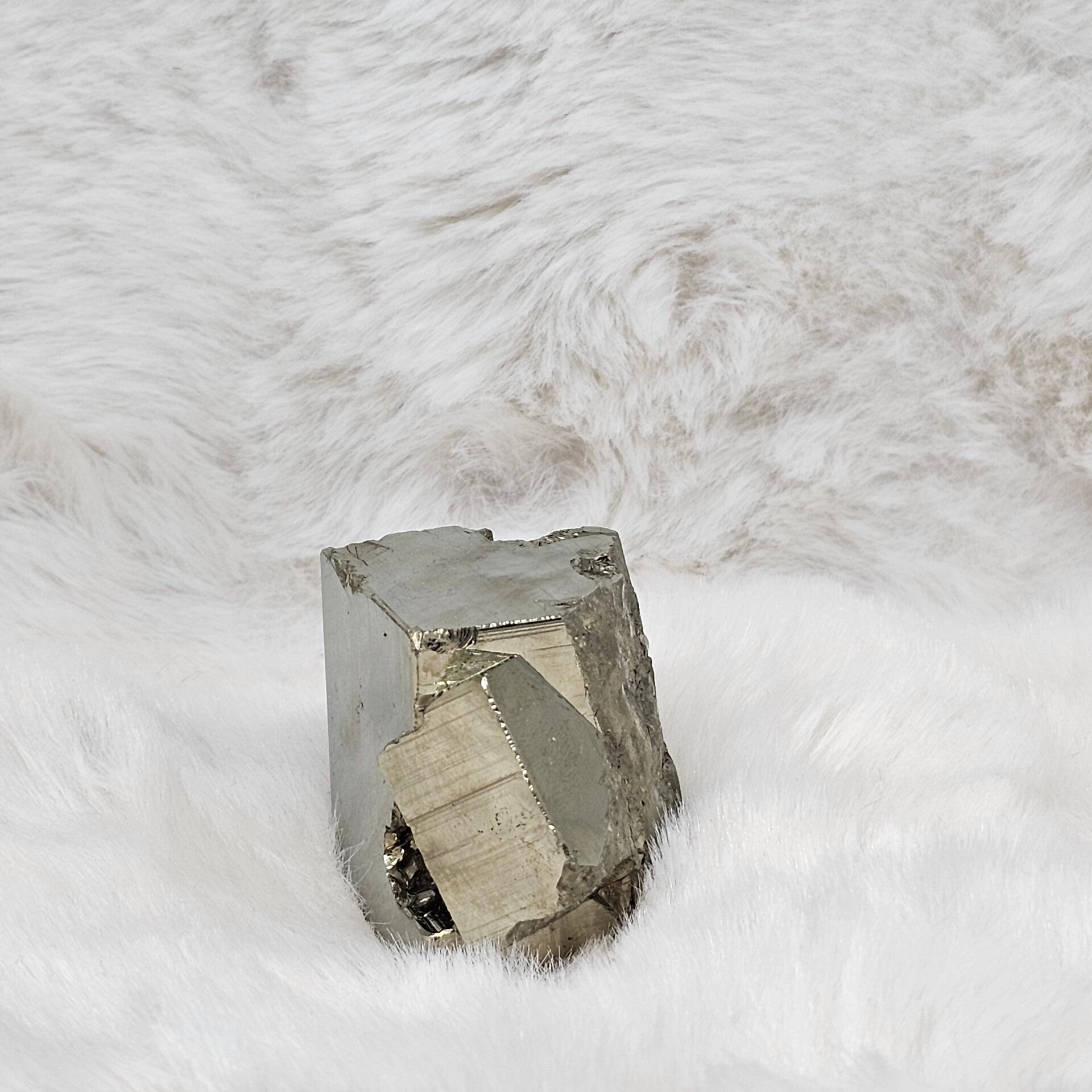 La Pyrite, du grec pyr (feu), est un sulfure de fer au magnifique éclat métallique doré, ce qui lui a valu le surnom trompeur d'« Or des fous ». Avec sa forme cristalline souvent en cube parfait, elle symbolise la structure, la Terre et la construction. C'est une pierre de Feu et de rigueur, qui apporte l'énergie nécessaire à la concrétisation des projets.