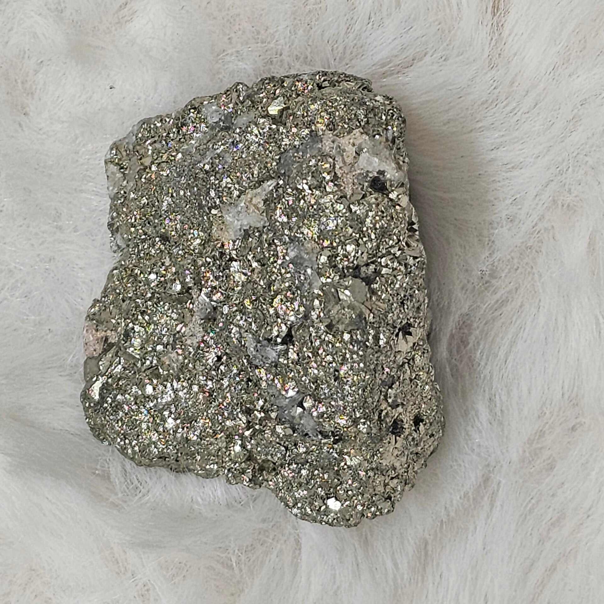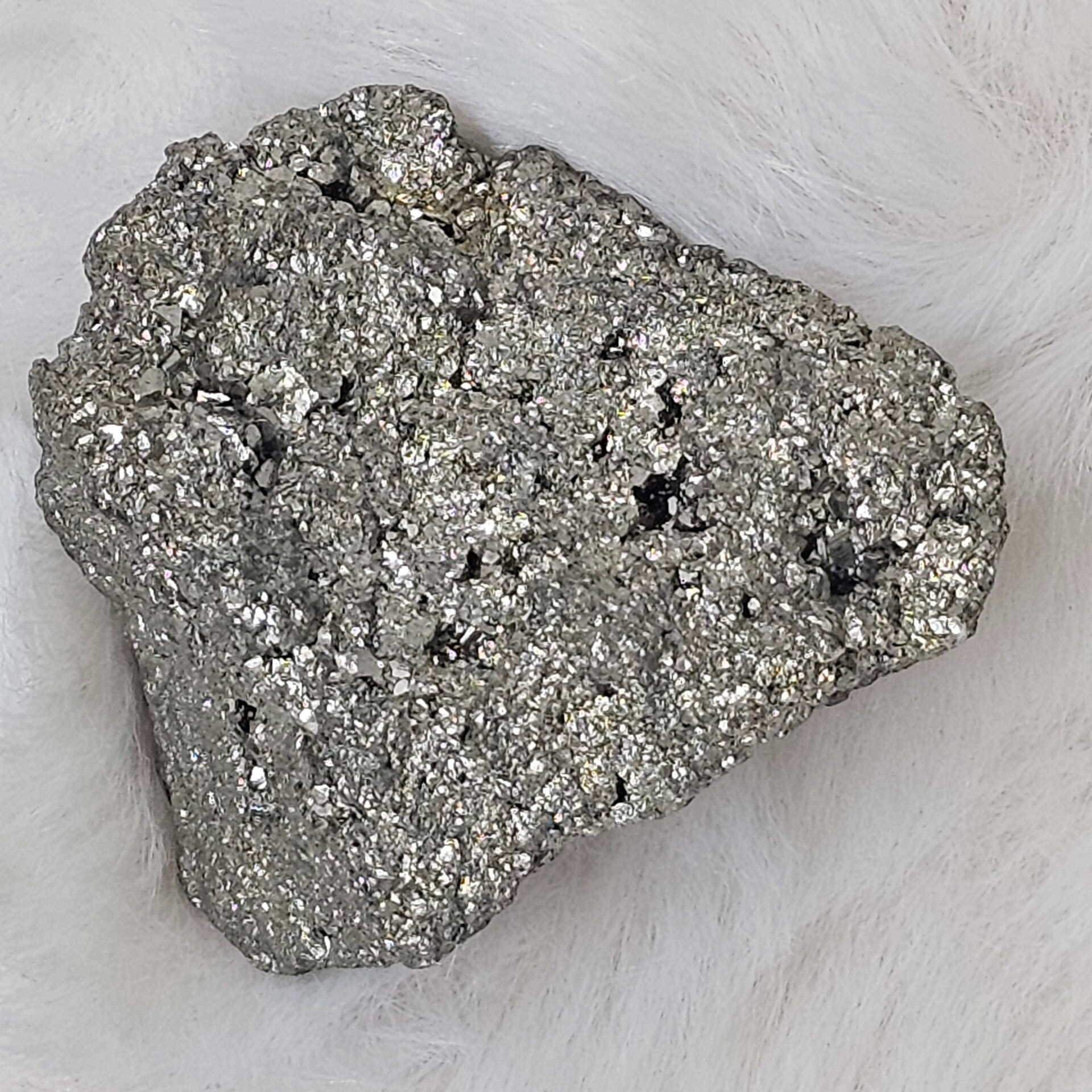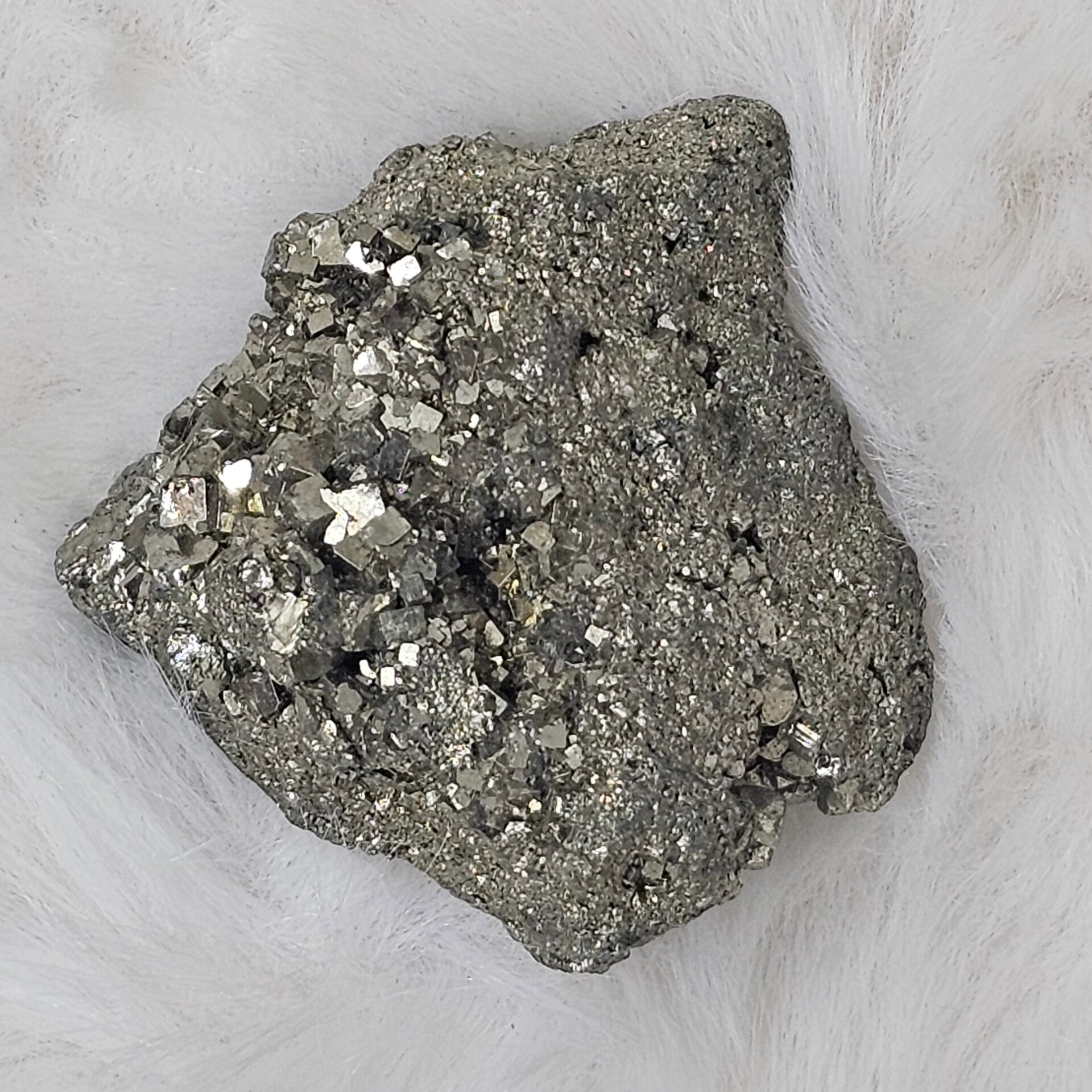 La Pyrite, du grec pyr (feu), est un sulfure de fer au magnifique éclat métallique doré, ce qui lui a valu le surnom trompeur d'« Or des fous ». Avec sa forme cristalline souvent en cube parfait, elle symbolise la structure, la Terre et la construction. C'est une pierre de Feu et de rigueur, qui apporte l'énergie nécessaire à la concrétisation des projets.