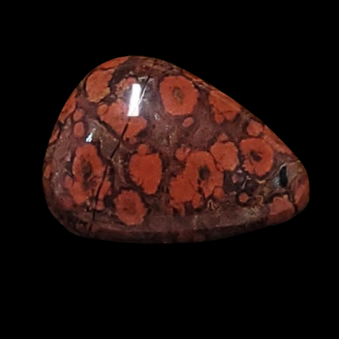 Le Jaspe Poppy est une pierre de célébration de la vie. Avec ses nuances de rouge brique parsemées de petites taches circulaires noires, blanches ou jaunes, il symbolise le renouveau et l'éclosion. Ses vibrations procurent un élan d'enthousiasme, aidant à sortir de la léthargie pour embrasser la journée avec optimisme. C'est l'alliée idéale pour ceux qui ont besoin d'un "coup de boost" moral et physique pour surmonter les petits défis du quotidien.