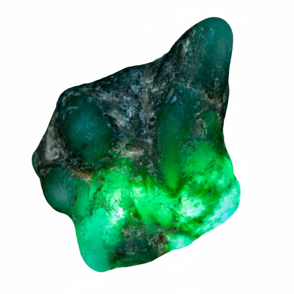 Le Vert Émeraude : Sa couleur ne doit être ni trop jaune, ni trop bleue. Elle est souvent nuancée. Si la couleur semble "peinte" ou concentrée uniquement dans les fissures de surface, la pierre a probablement été teintée artificiellement.