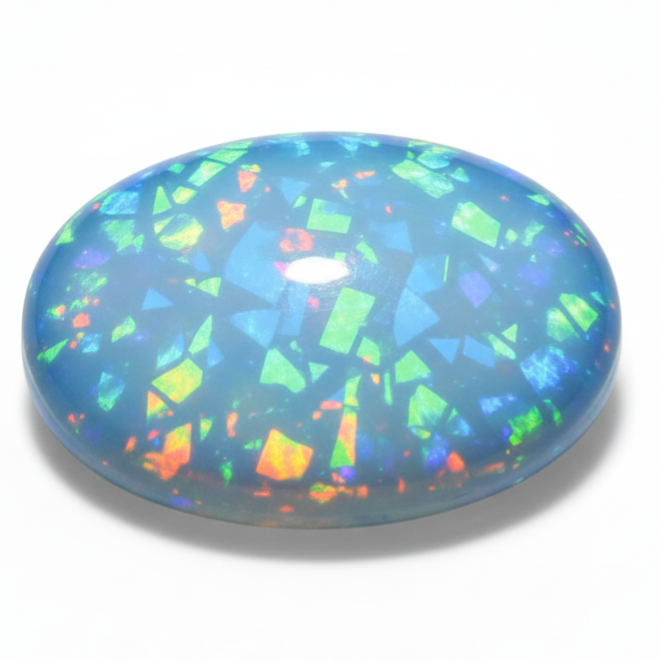 Ces opales sont créées en laboratoire et possèdent la même composition chimique que la pierre naturelle, les rendant très convaincantes.